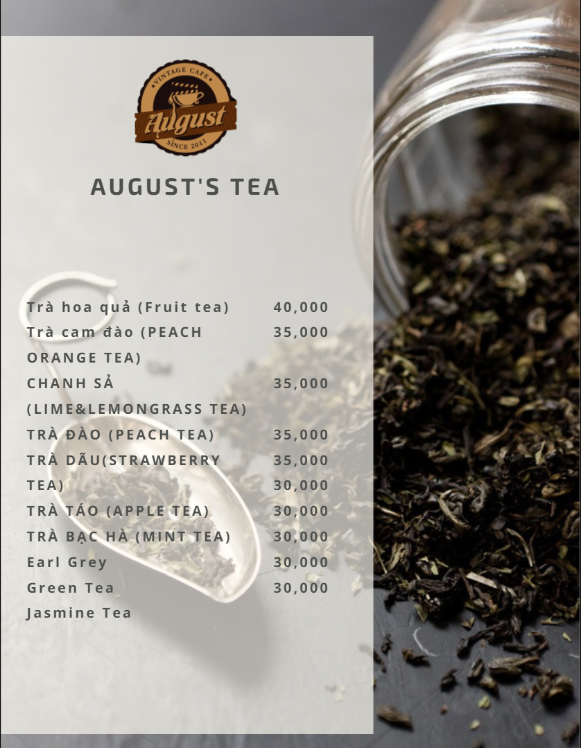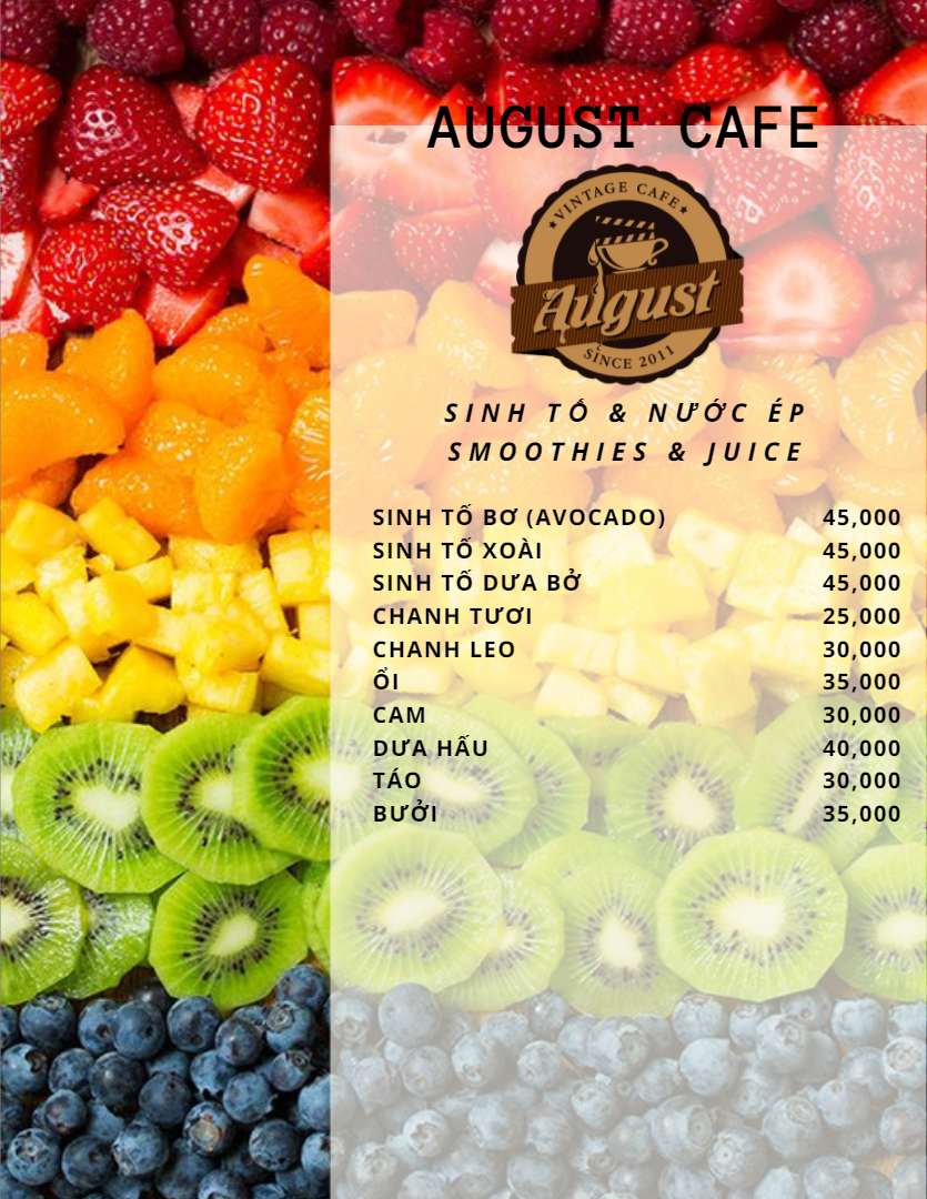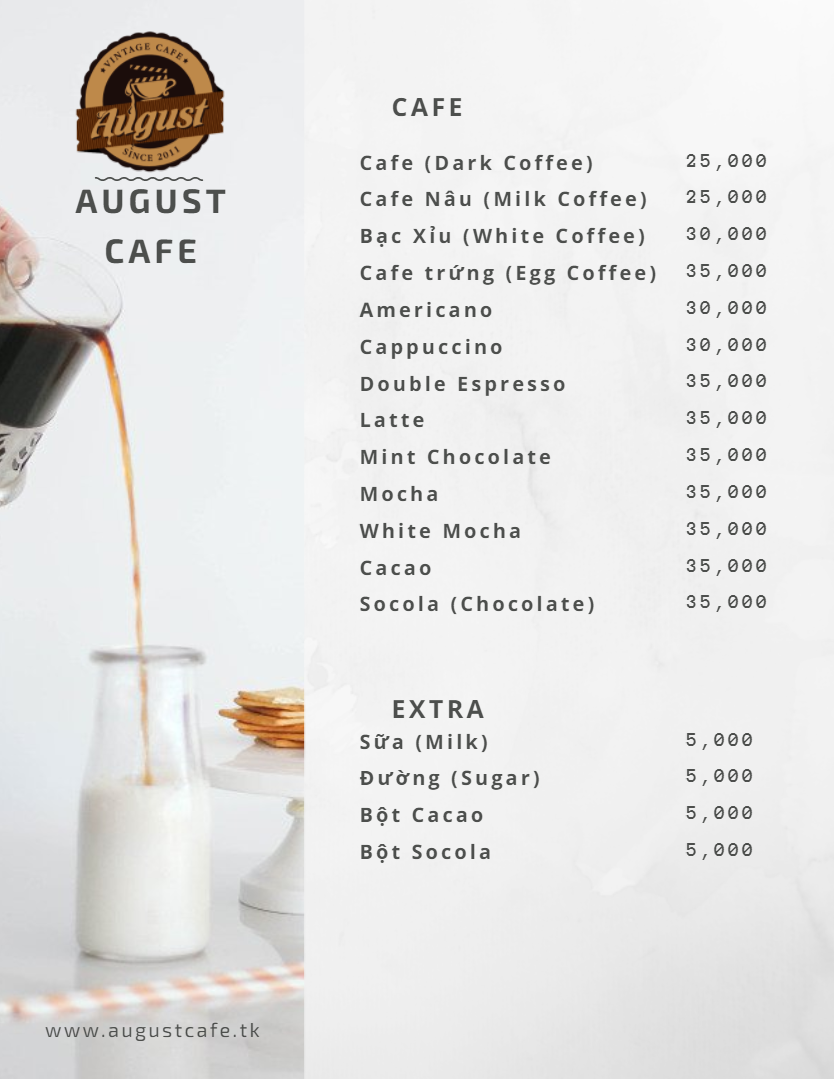 August Cafe Menu
